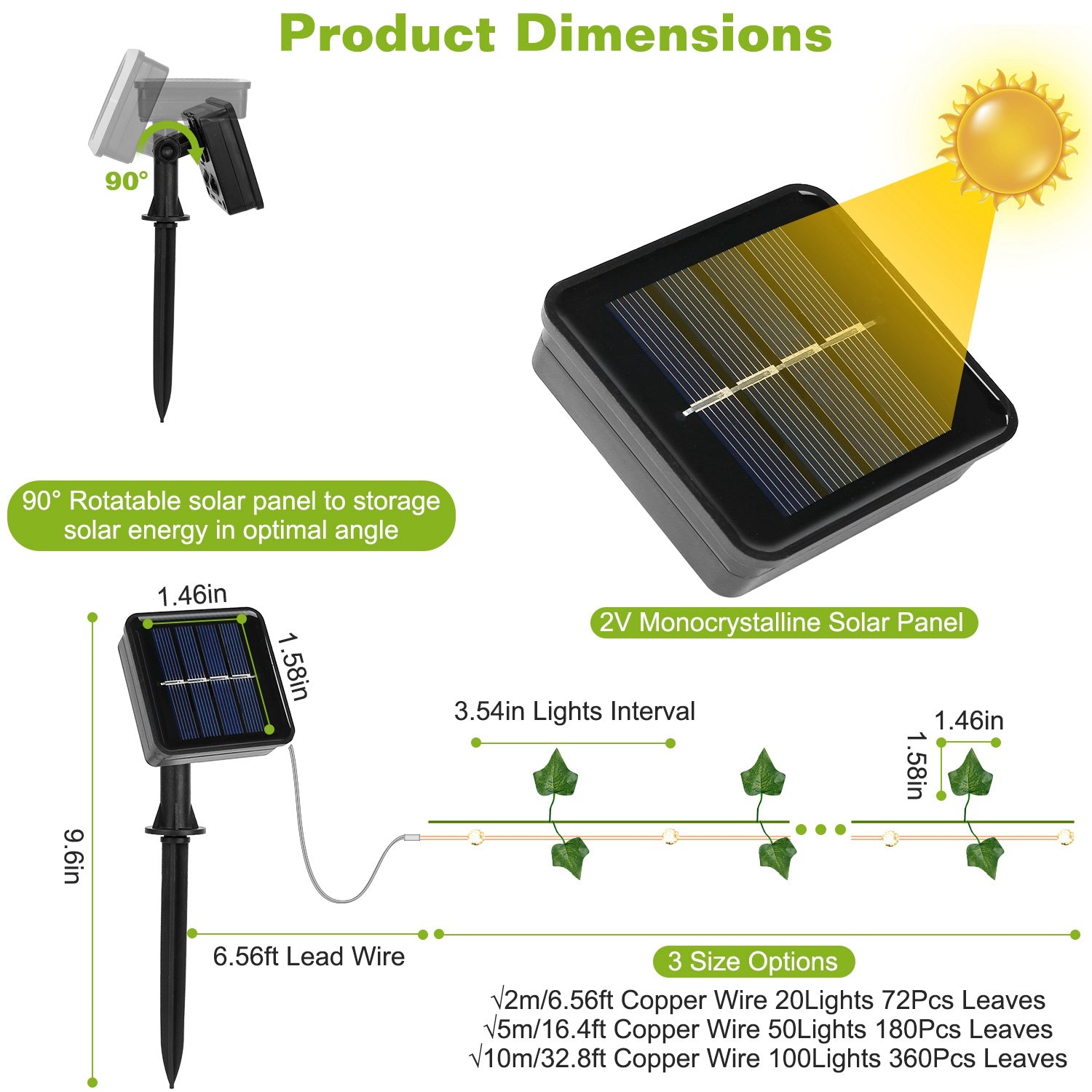 Artificial Ivy Solar Powered String Lights 180Pcs Leaves 50Pcs LED Beads Fake Leaf Fairy Lamps IP65 Waterproof DIY Decorative Night Light For Wedding
