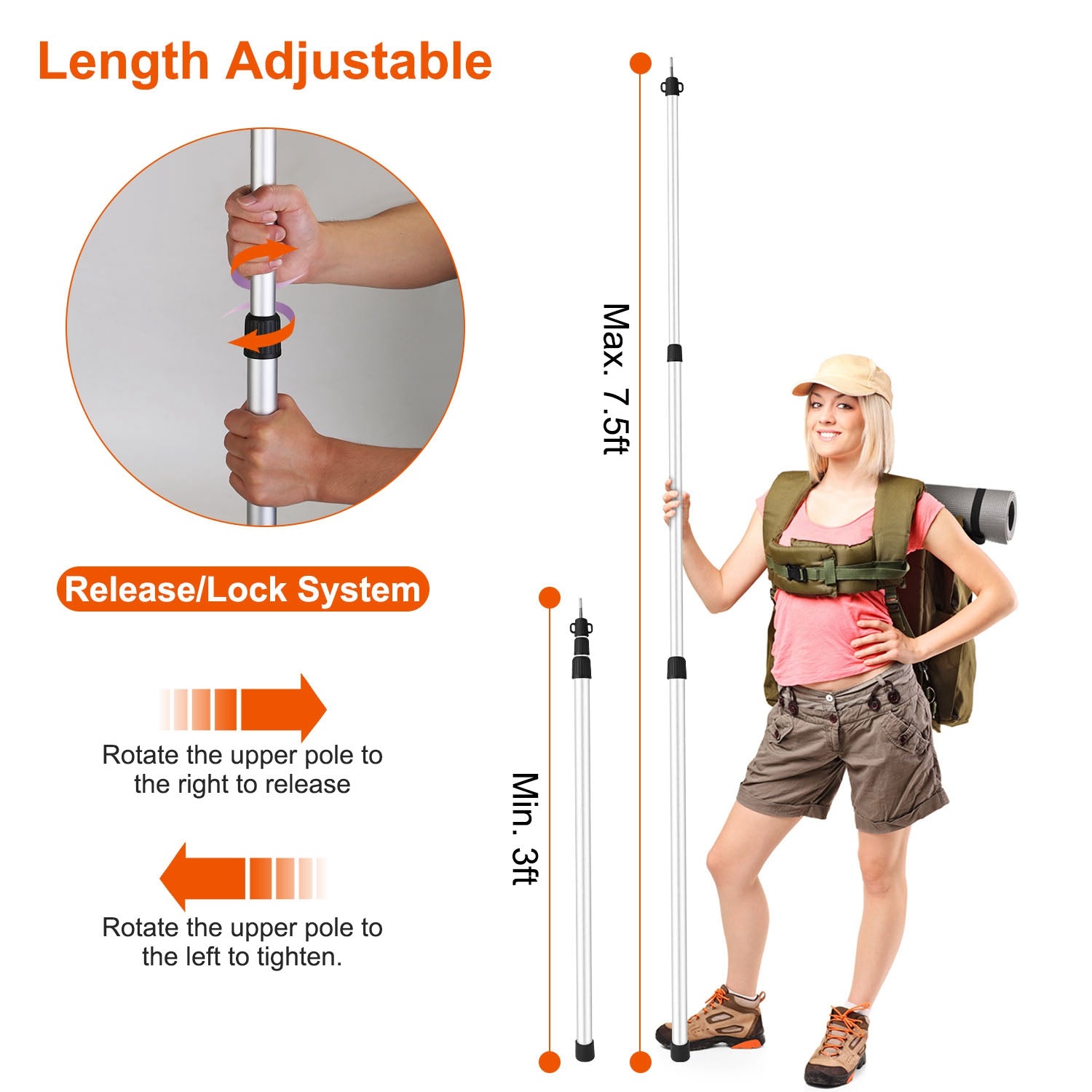 Our telescopic tarp poles with a carrying bag are the perfect companion for any outdoor trip! It can be adjusted from 3ft to 7.5ft to fit all your tarp needs and gives you a better shelter for rest. Perfect for shelter on the beach or as a resting point during a hike/camp/trail in the wilderness. Aluminum alloy material allows it to be used for many years.