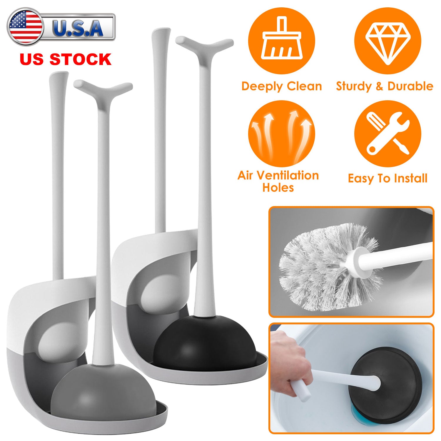Toilet Plunger and Brush Combo Set with Ventilated Holder 2 in 1 Toilet Cleaning Tools Set with Caddy Stand for Bathroom