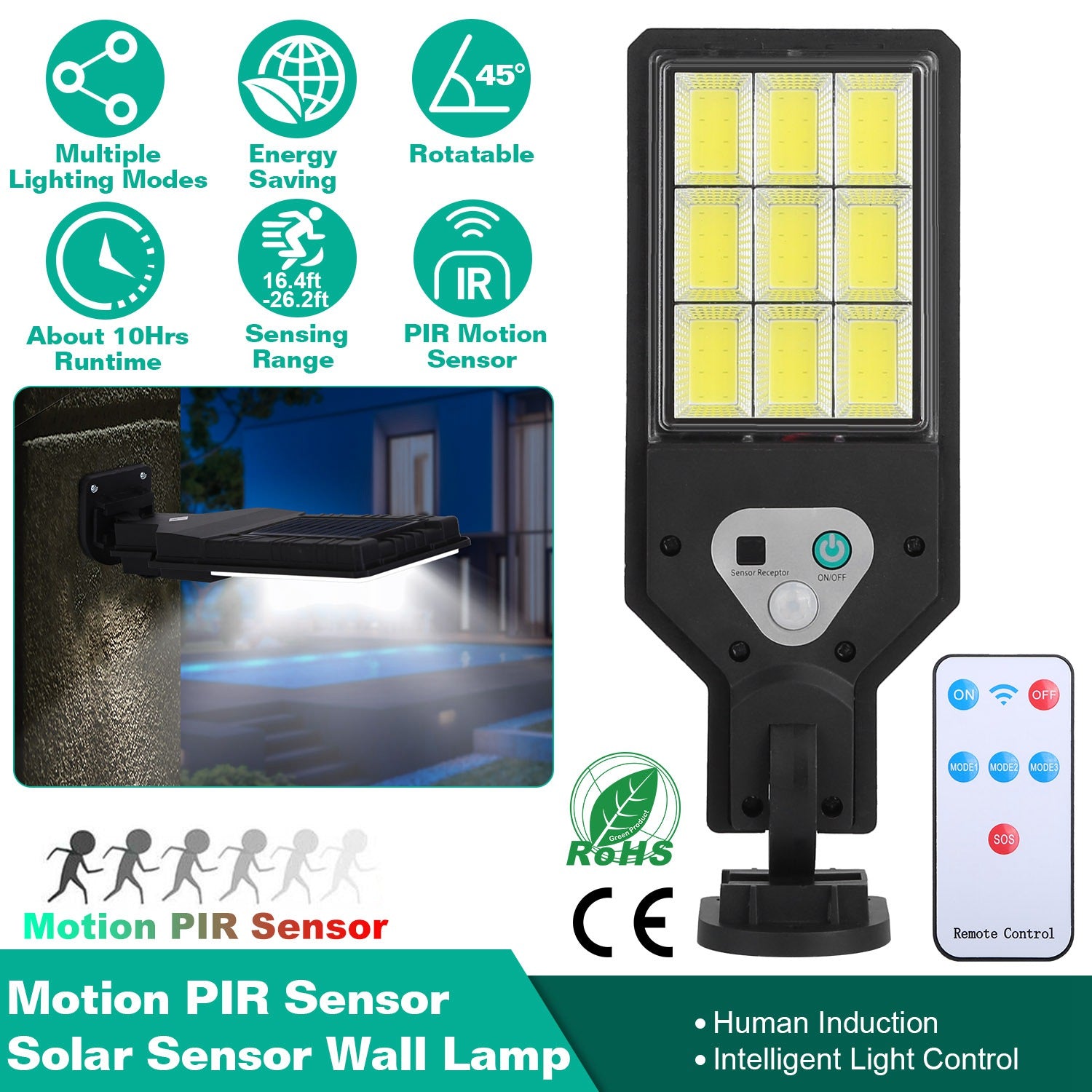Solar Wall Light Outdoor 9 COB Beads PIR Motion Sensor Remote Control Wireless Lamps IP45 Waterproof Lighting for Garage Front Door Garden Pathway