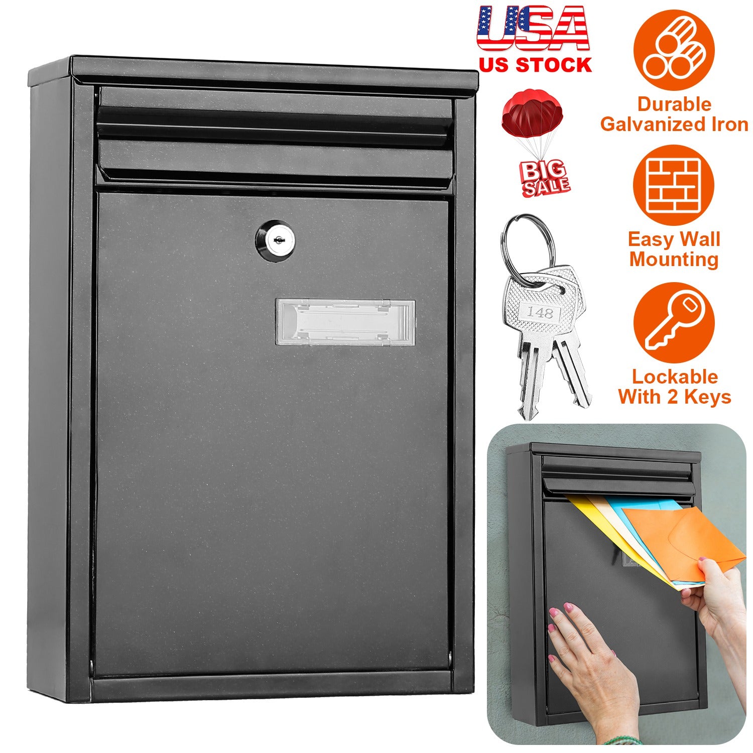 Wall Mount Mailbox Lockable Galvanized Iron Letter Post Box Locking Security Drop Box with 2 Keys for Outside Home Office