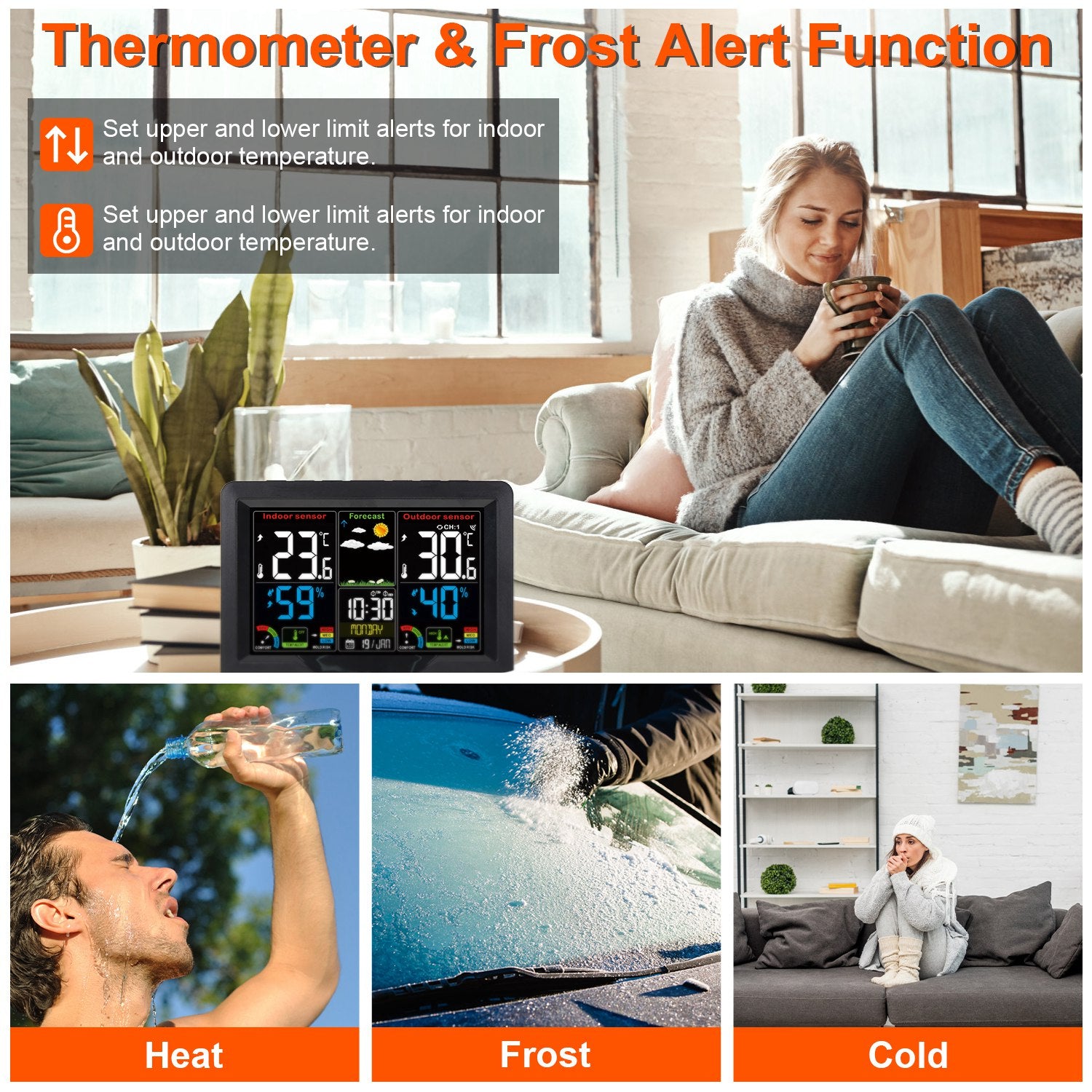 Electric Weather Station Snooze Alarm Clock Wireless Sensor Indoor Outdoor Thermometer Humidity Weather Forecast Temperature Frost Alert with Backligh