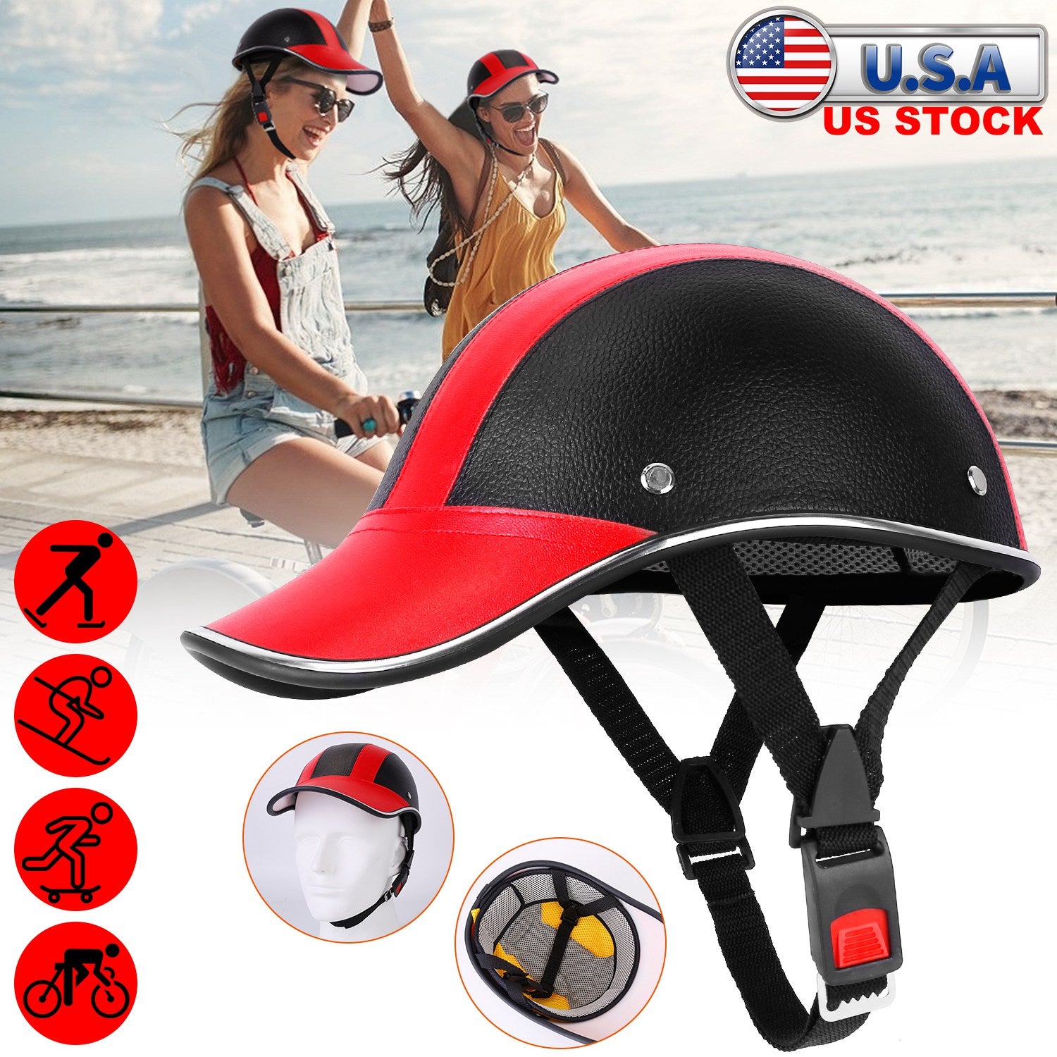 Safety Bicycle Helmet Adjustable Windproof Bike Helmet Sunshade Baseball Cap Anti-UV Cycling Motorcycle Hat Leather Helmet