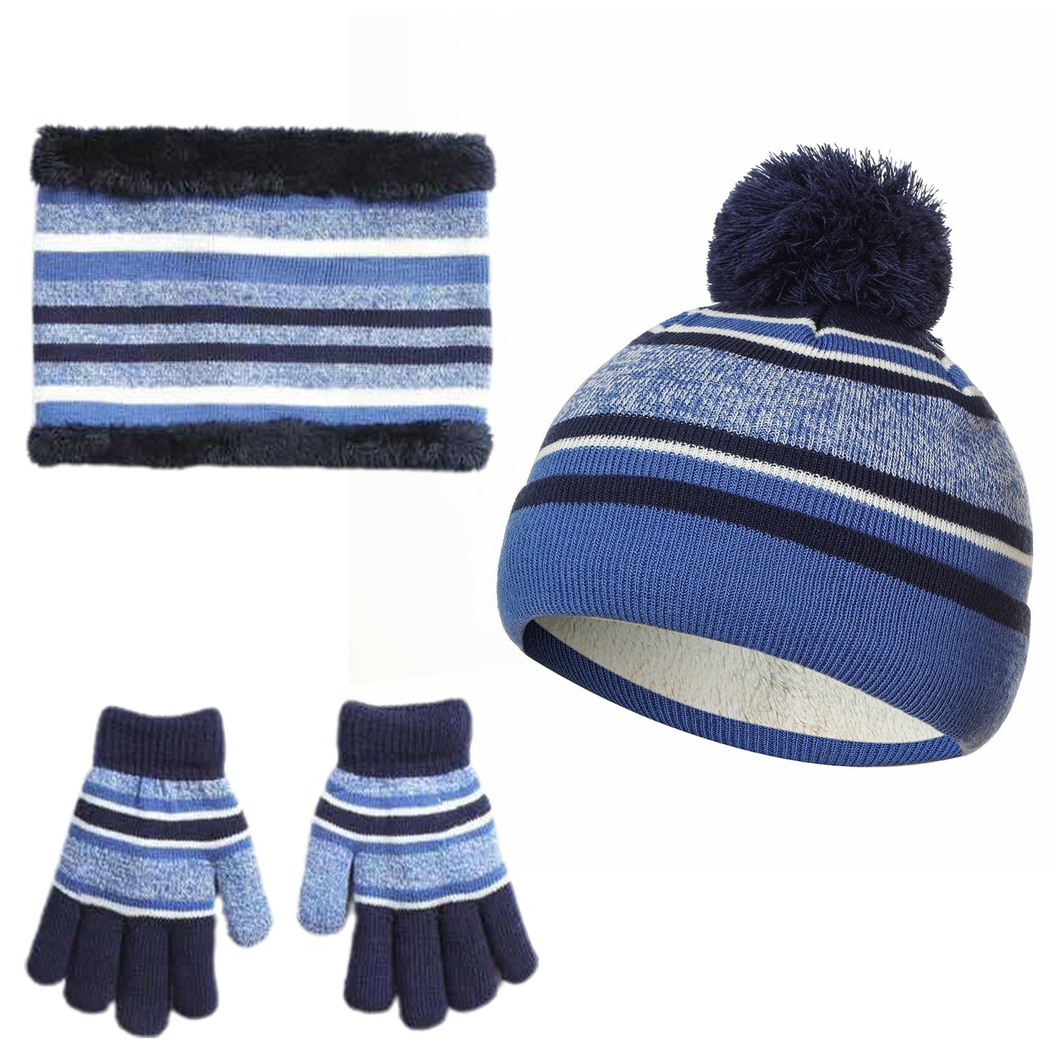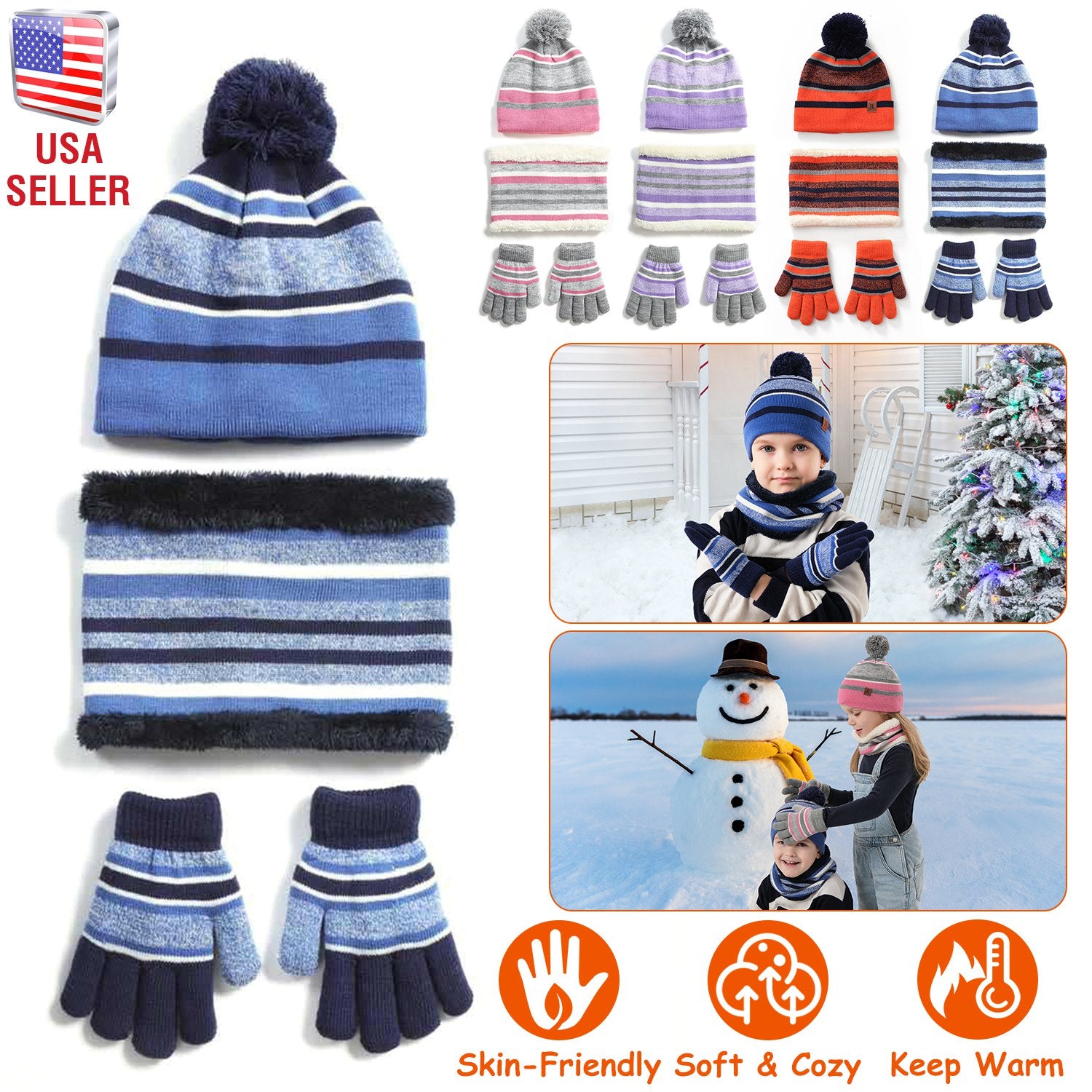 Winter Kids Knitted Hat Scarf Gloves 3Pcs Boys Girls Winter Warm Beanie Hat and Glove Scarf Set Beanie Neck Warmer Mittens for 4-7-Year-Old Kids