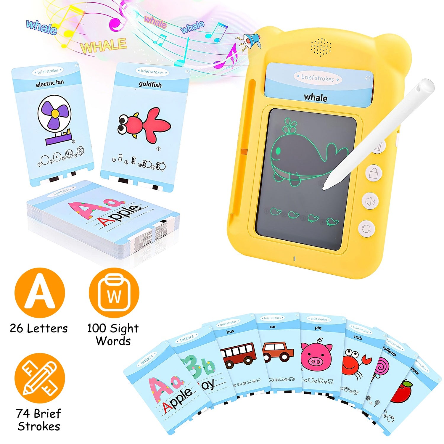 100 Words Talking Flash Cards 5.5In Toddler LCD Writing Tablet with 50 Double-sided Cards Stylus Pen Electronic Cognitive Audio Toddler Reading Machin