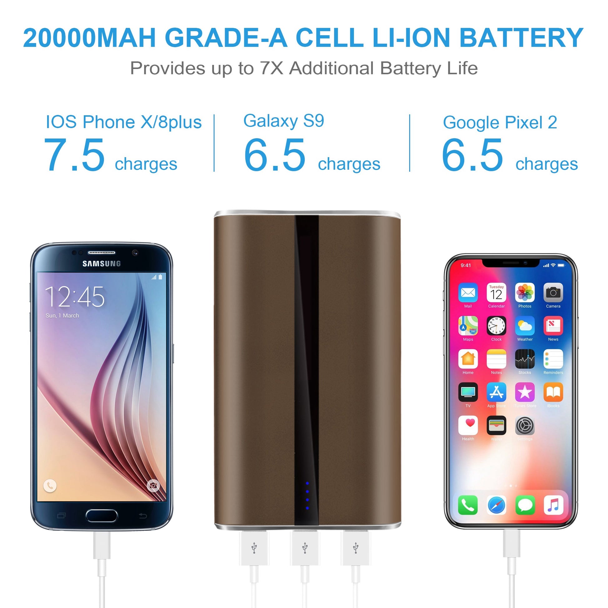 Portable Charger 20000mAh Power Bank Total 5.8A Output 3-USB Ports External Battery Pack Portable Phone Charger for IOS Phone11/Pro/Max/8/X/XS iPad S