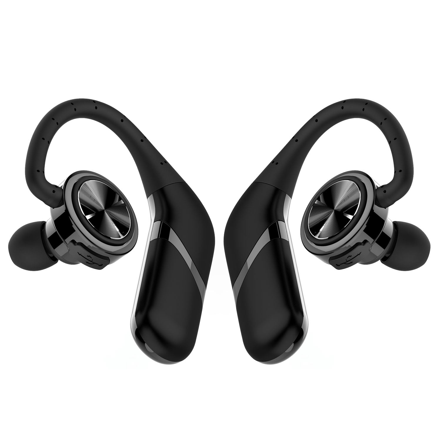 Our wireless earbuds adopt advanced Wireless V5.0 and high-sensitive inbuilt mic with noise canceling technology, deliver crystal clear stereo sound. Inbuilt a 130mAh rechargeable battery of earbud lasts up to 11Hrs unstoppable music time with 1.5Hrs fully charged via Y-shaped USB charging cable. Designed with durable hooks and premium silicone gel ear tips(S/M/L) fits your auricle and provides you comfortable long time wearing experience. Simply and quickly fulfill almost all functions via pressing one multi-functional button. IPX6 waterproof and sweat-proof performance prevent earbuds from corrosion. Support stereo clear phone call and optimal for business and driving and dating sharing use.