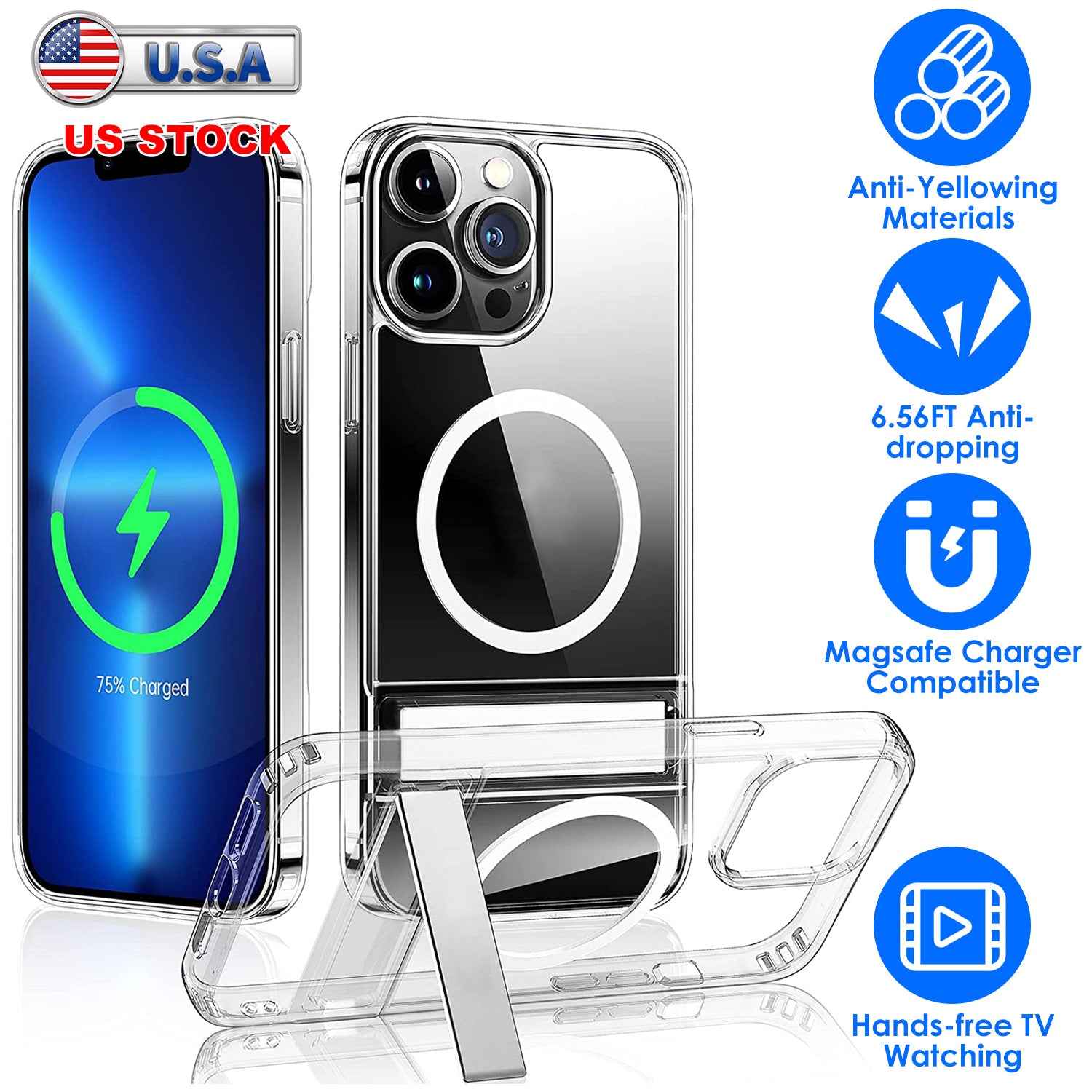 Magnetic Metal Kickstand Clear Case Shockproof Anti Yellowing Phone Cover Compatible with Magsafe Fit for IOS Phone 13 Pro Max