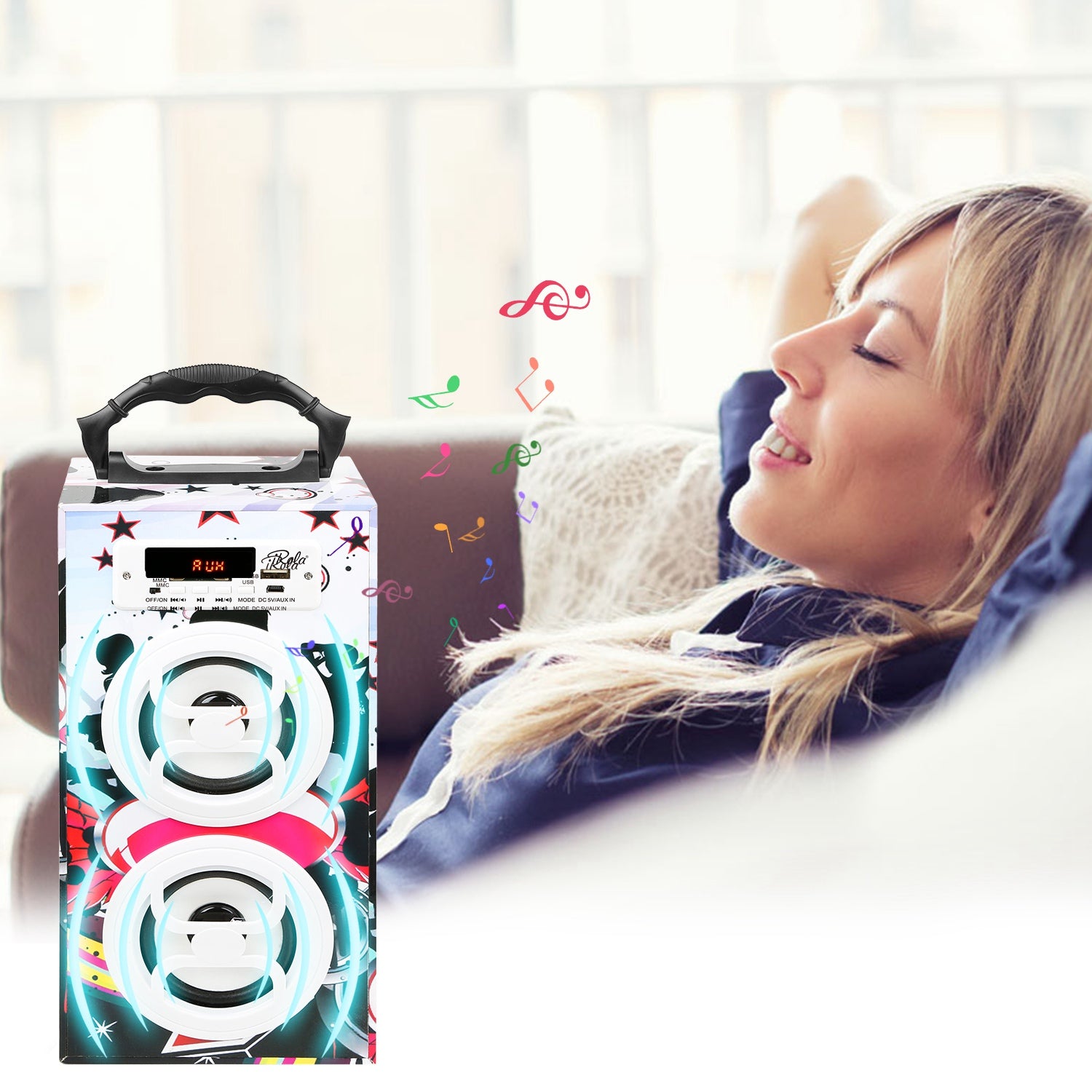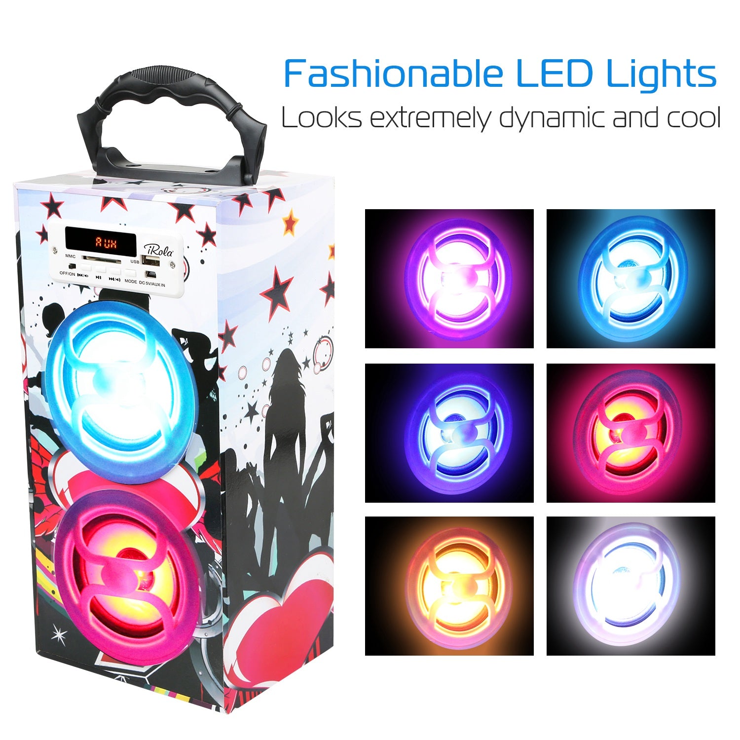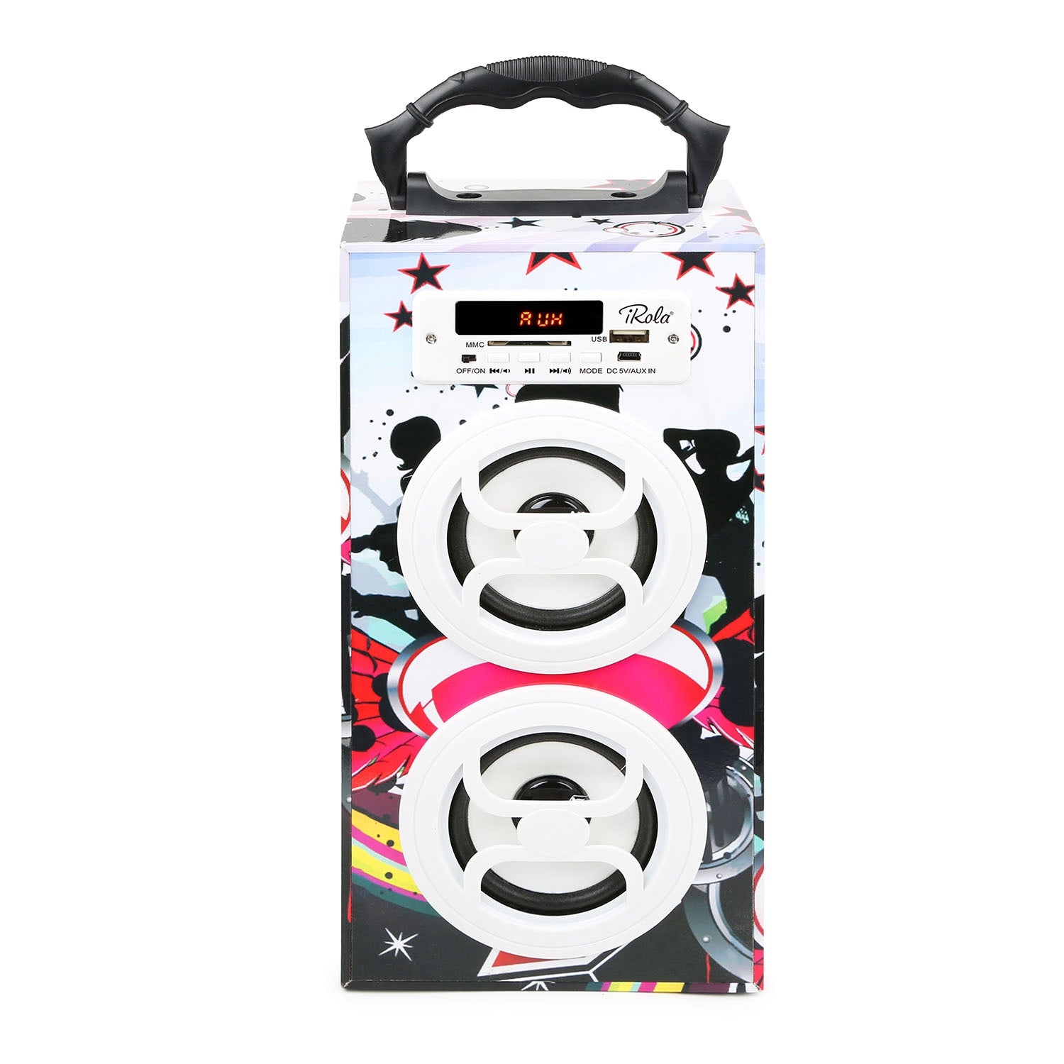 iRola Wireless Speaker 10W Powerful Subwoofer Wooden Loudspeaker FM AUX MMC for iPhone X Samsung S9 Tablet PC