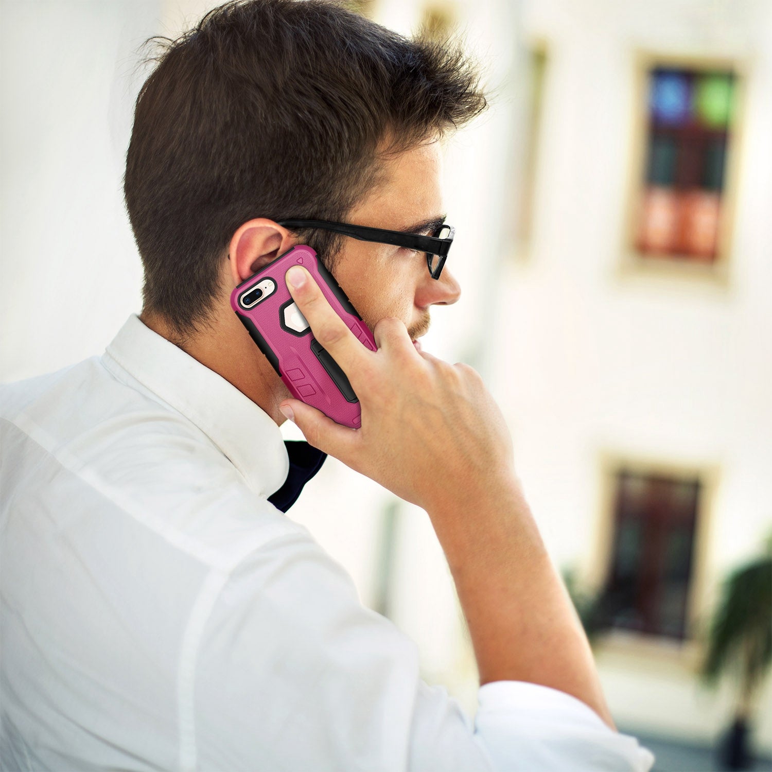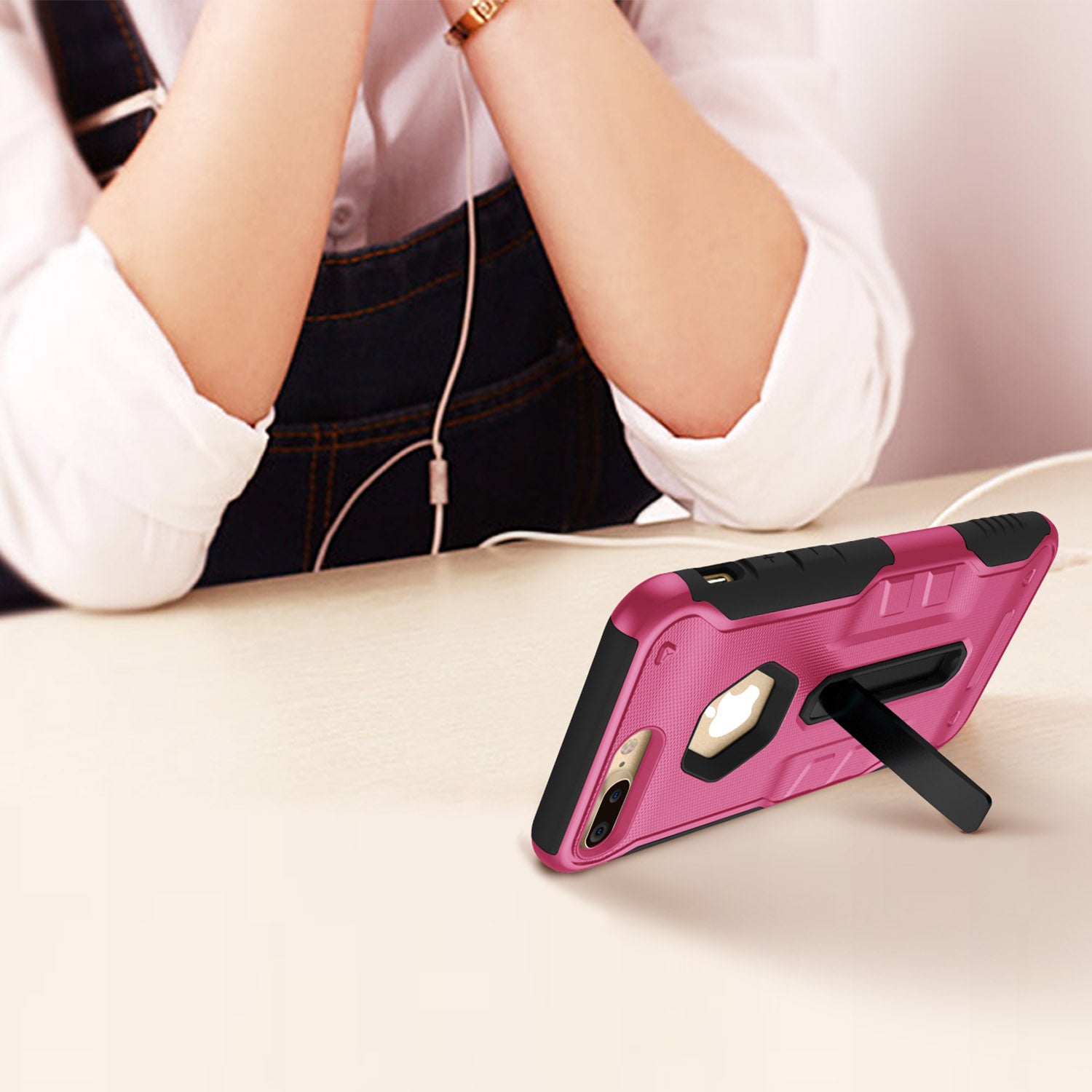 This rugged case provides dual layer protection for iPhone 8 Plus against bumps, chips and scratches. Textured back cover helps to reinforce grip to prevent the phone from sliding out of your hands. With this case, you can still easily adjust volume, set mute, listen to music and go charge, because all ports and buttons are allowed to full access. When you enjoy the phone but have/want to free both hands, just fold out the convenient metallic kickstand that is snugged in place quietly by magnet.