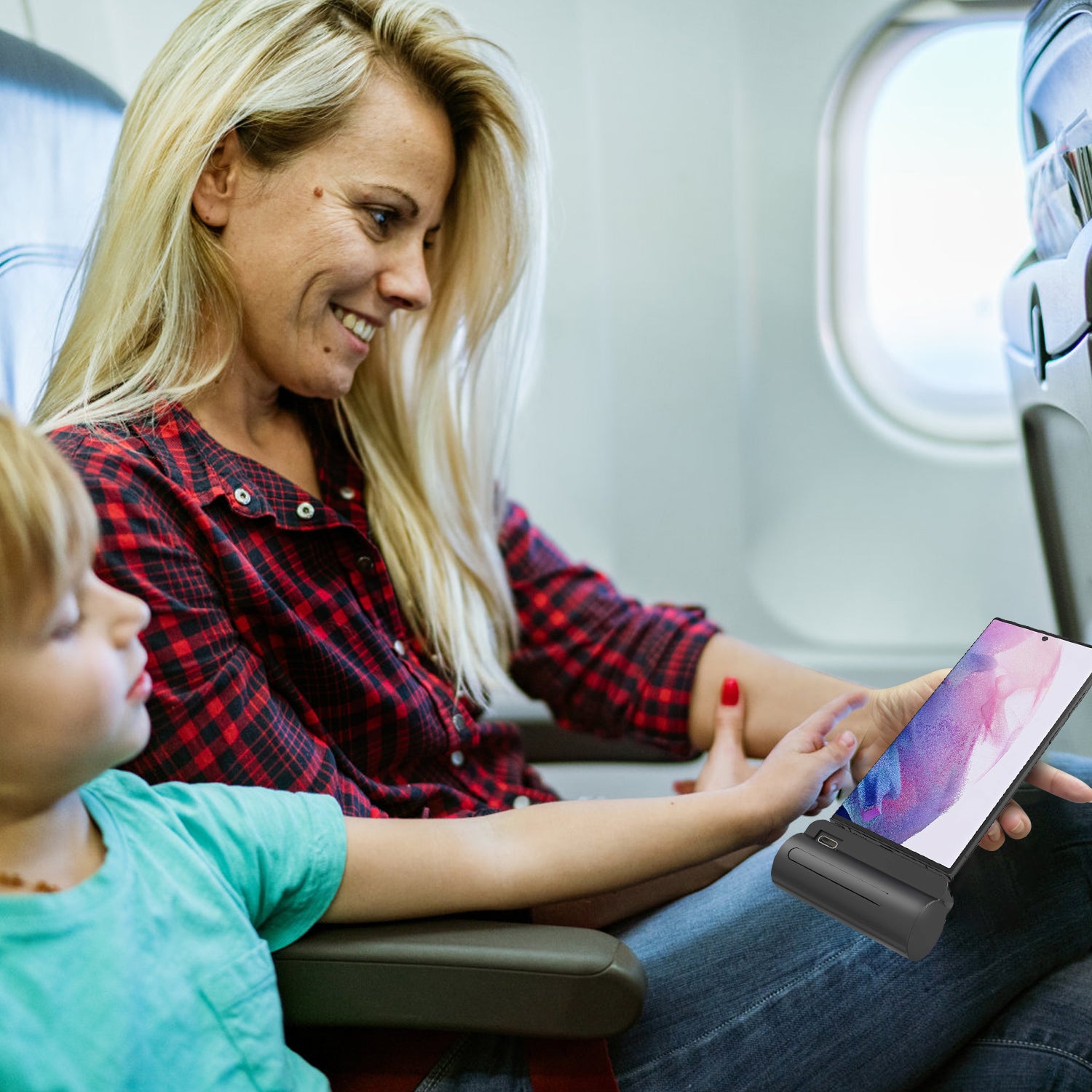 DonÕt make charging become your burden when traveling. Our portable phone charger is almost the size of a lipstick, the compact size allows you to easily store it in your pocket or bag. Provide a total power up to 5000mAh, you can charge IOS Phone 14 for 1.5 times. Come with built-in dual outputs, help you get rid of messy charging cables and compatible with most types of phones. Unique strap design makes the Type-C charging cable as a wrist strap when not in use. Our airline approved phone charger is a perfect companion for home, office and travel.