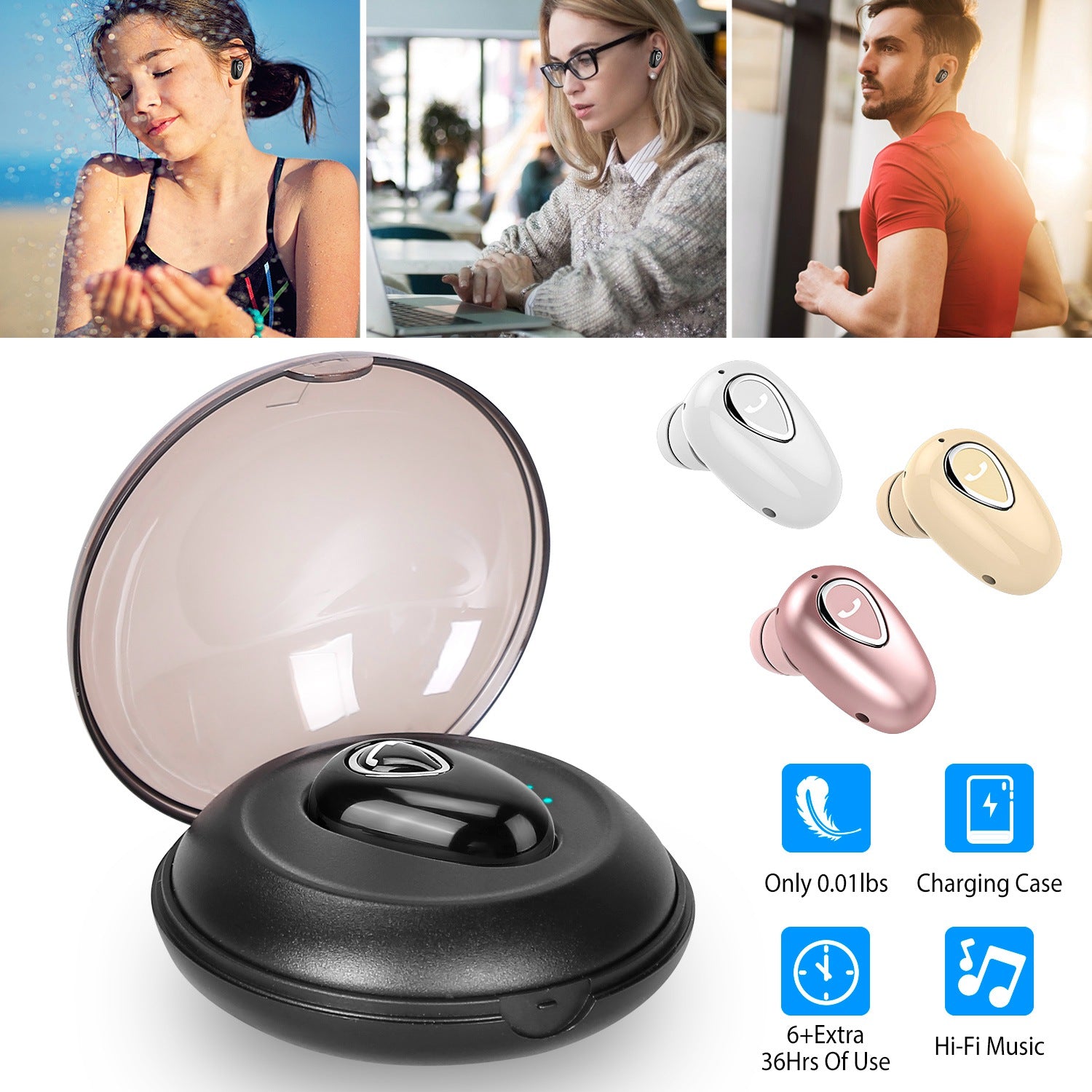 This wireless earbud is aimed at creating an immersive listening environment and offering a nearly face-to-face voice call experience. Tired of picking up the phone with hand and dealing with a tangle of wire? Just wear this earbud to free your hands and enter the music world. With 42 hours runtime, you can listen to music and watch movies for a whole day in different occasions.