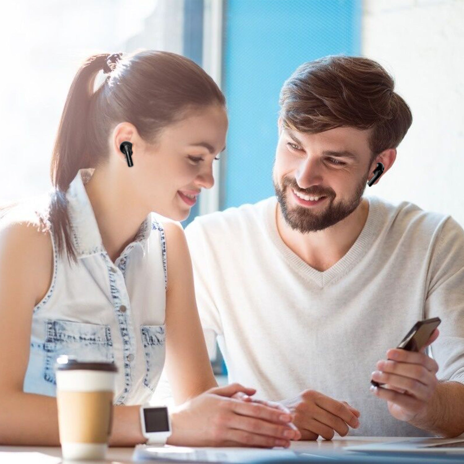 Our wireless earbuds adopt advanced Wireless V5.0 and high-sensitive inbuilt mic on each earbud, deliver crystal clear stereo sound. Come with a portable charging case, it can extend music playing time from 4Hrs to about 32Hrs. IPX4 waterproof rating prevents headphones from sweat and corrosion, ideal for car owners, white collars, businessmen, and during travel, sport or daily life.