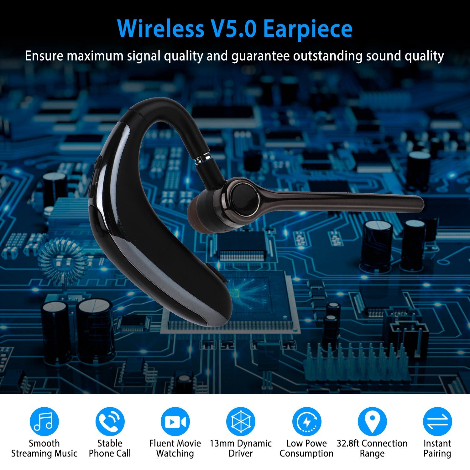 If youÕre out and about to work on the go, you need to keep your eyes on the job (and your phone out of your hands). This wireless business earpiece enables you to pick up phone calls at the touch of function key. Ultra lightweight and comfortable design, ergonomically-shaped in-ear plugs and ear loops brings comfortable and no heavy feeling even after long-time wearing. It lasts up to 9 hours working time and 260 hours stand-by with a quick charge of only 1.5 hours. Adopt the version of wireless V5.0, it greatly reduces the chance of cutting in and out and provides more stable connection.