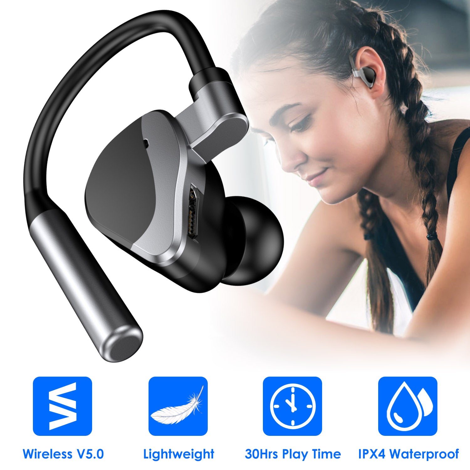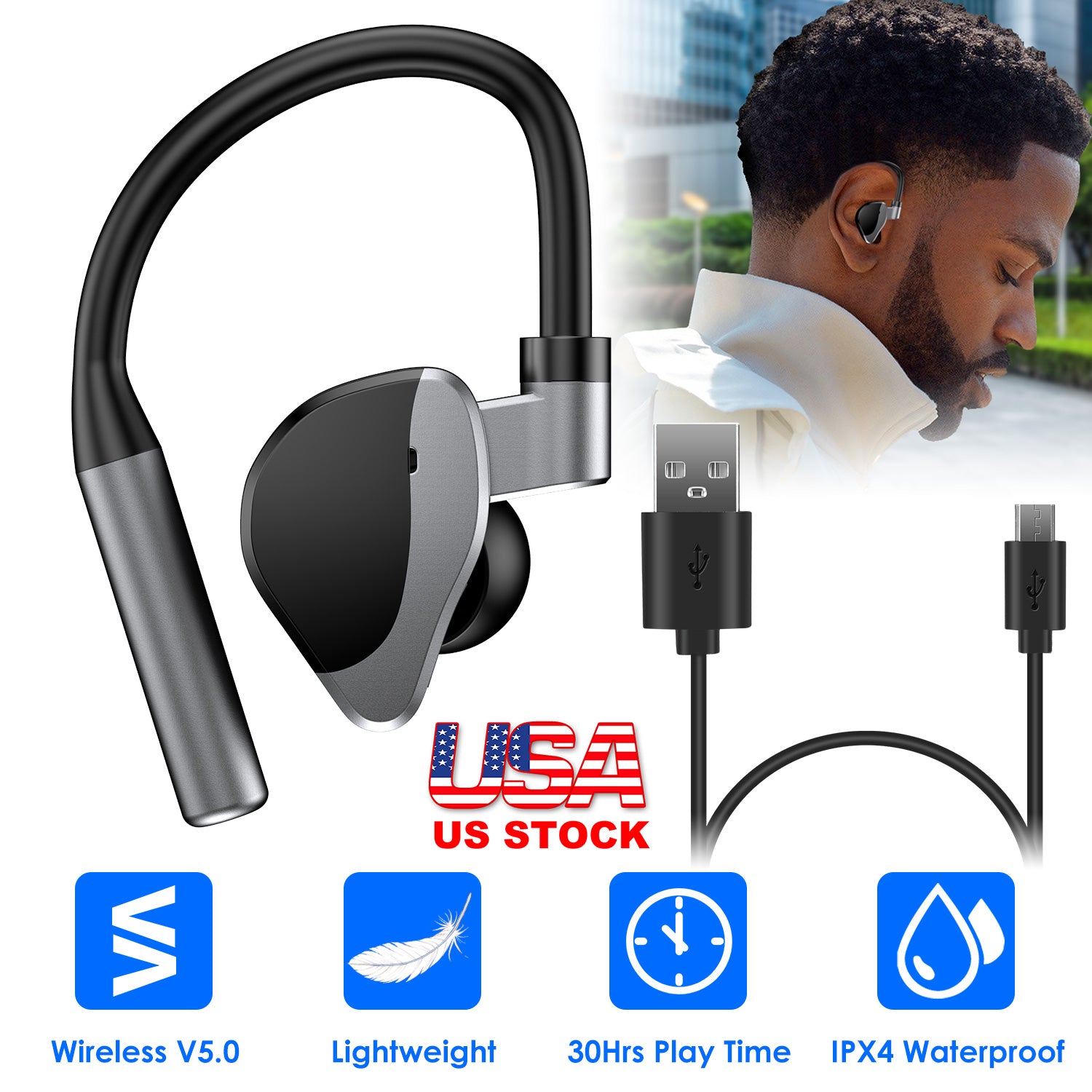 Unilateral Wireless Earpiece Rechargeable Wireless in-Ear Headset with Hook for Car Driving Phone Call Office