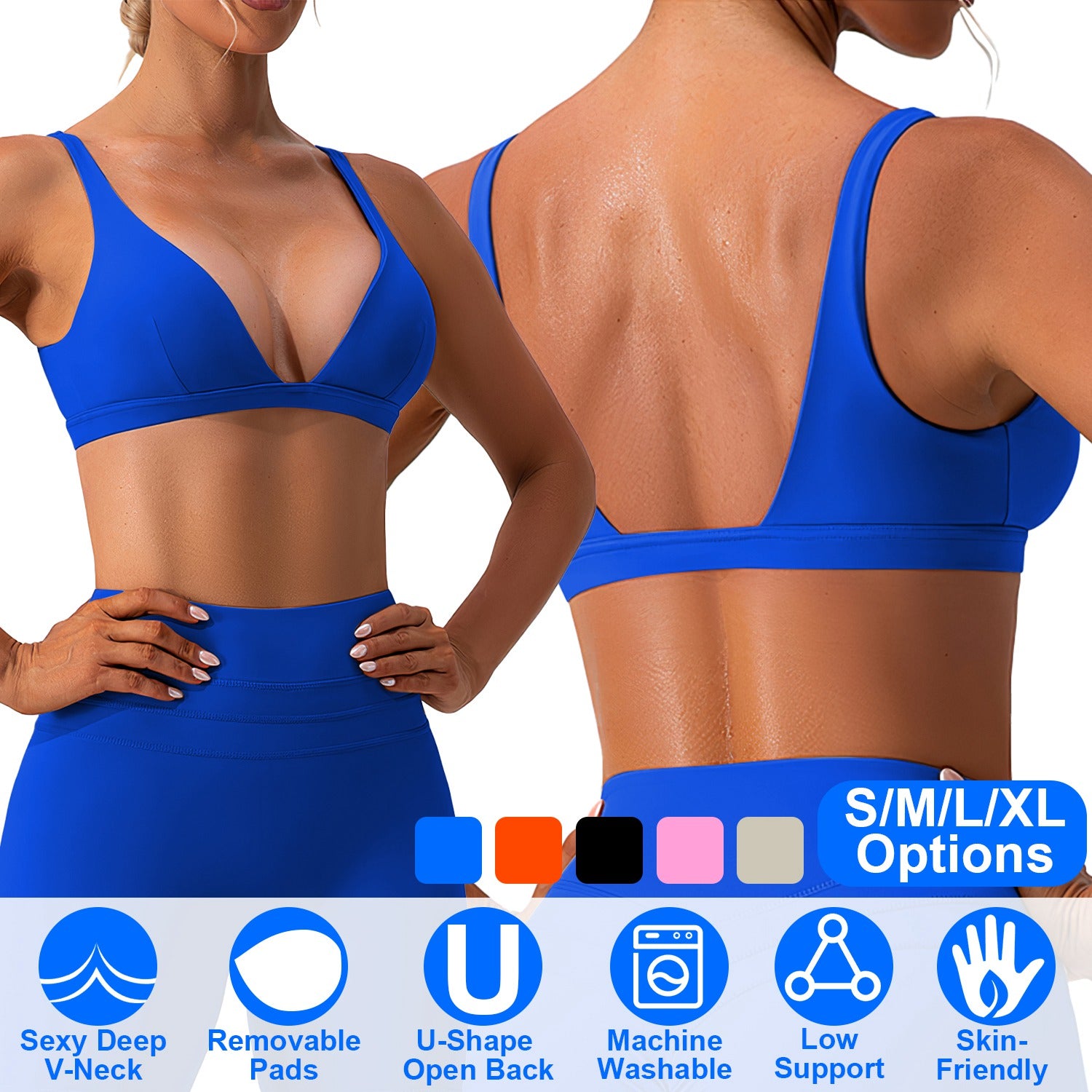 Women Deep V-Neck Sports Bras U-Shaped Back Sport Bras Padded StrappyÊCrop Open Back Low Impact Bras SexyÊFitnessÊTank Tops with Removable Pads for Gy