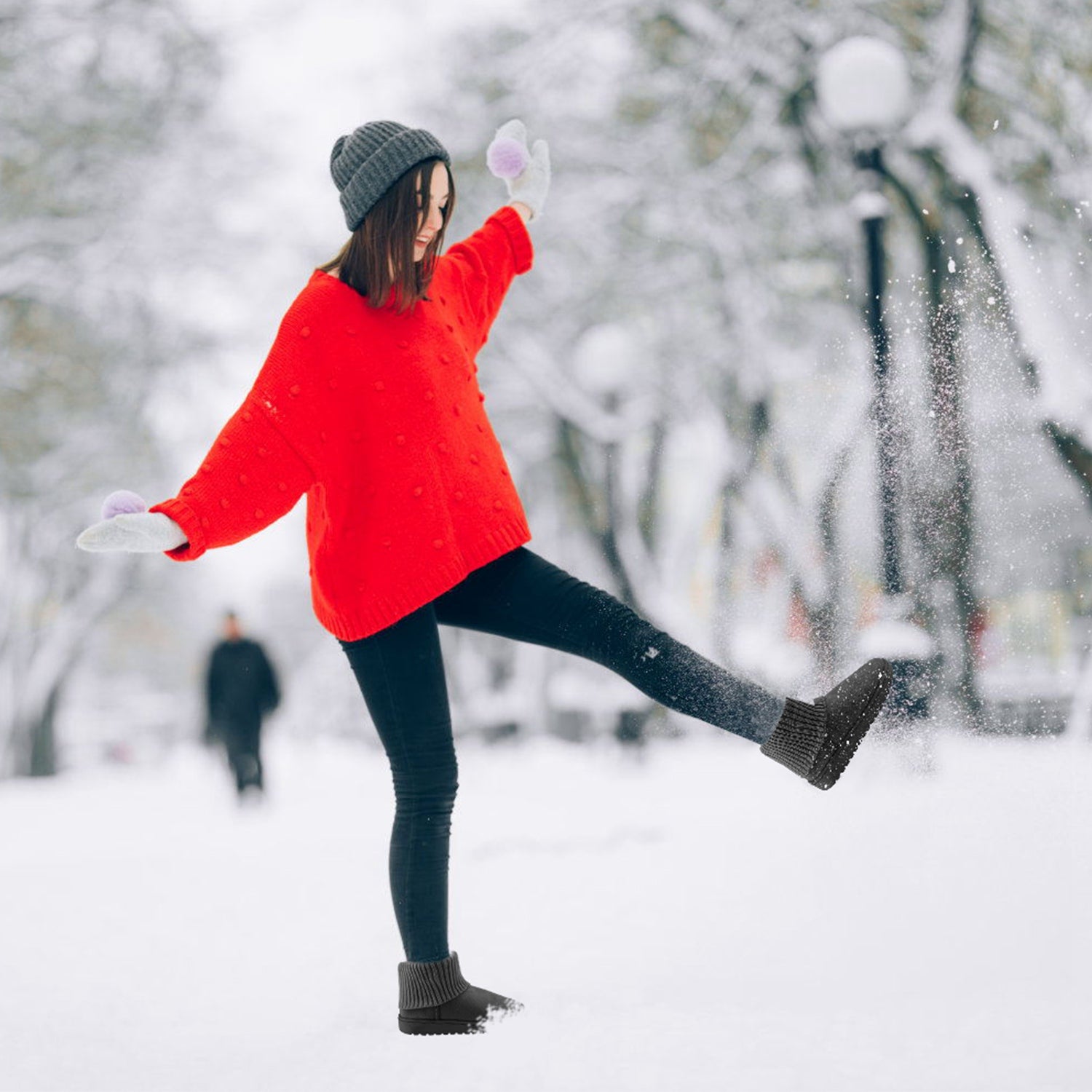 The coming winter season may get cold and nasty, but you\'ll always feel warm and look good with our warm and comfortable snow boot, which are made with suede and thick short plush lining so as to keep your foot and calf warm and offer comfort all-day long during chill winter. 0.8in rubber outer sole can increase traction, flexibility and skid resistance, which make it excellent to improve the vitality of outdoor sports. Moreover, it\'s excellently suitable for winter and autumn casual outdoor wear. Unique knitting design allows you to be stylish while keeping you warm.