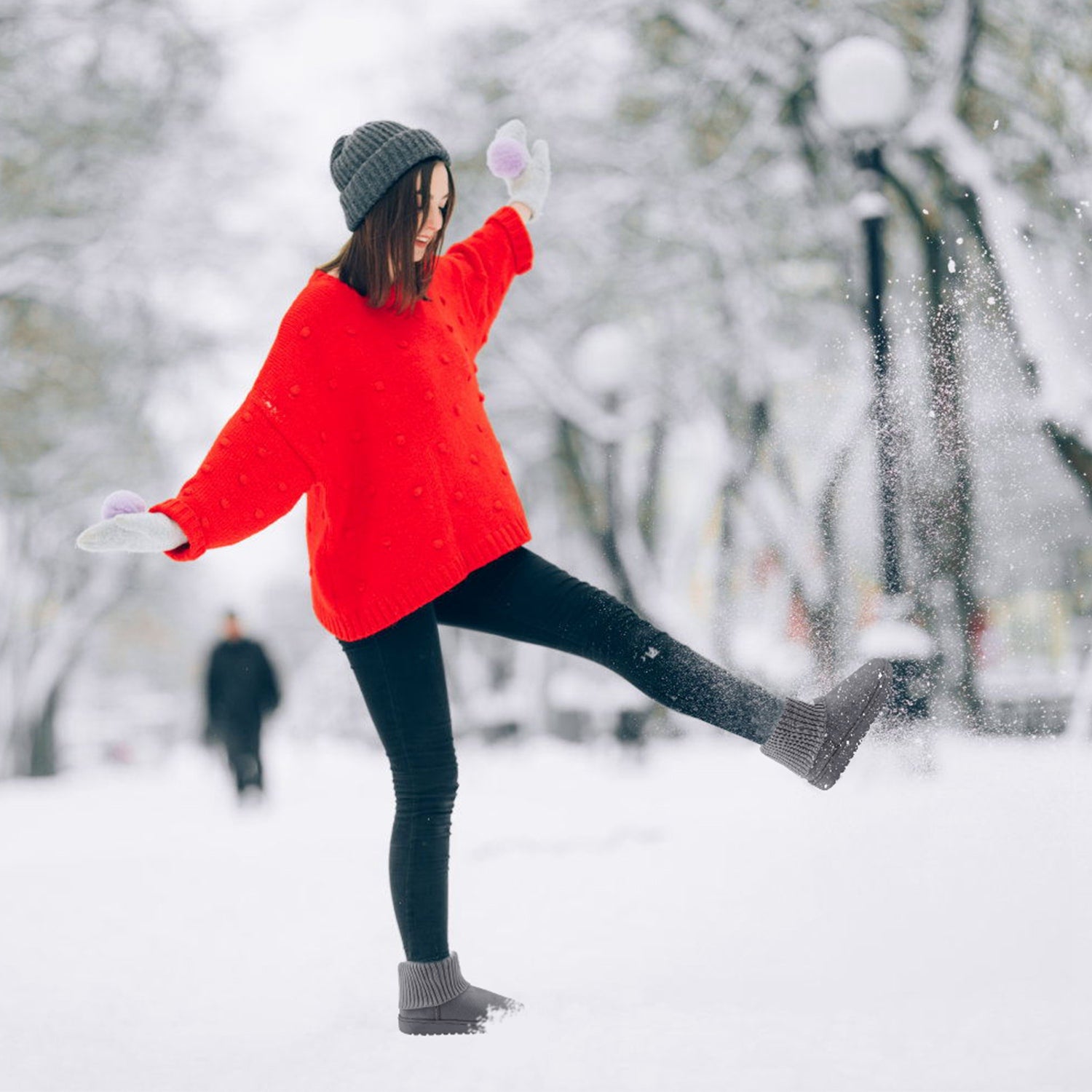 The coming winter season may get cold and nasty, but you\'ll always feel warm and look good with our warm and comfortable snow boot, which are made with suede and thick short plush lining so as to keep your foot and calf warm and offer comfort all-day long during chill winter. 0.8in rubber outer sole can increase traction, flexibility and skid resistance, which make it excellent to improve the vitality of outdoor sports. Moreover, it\'s excellently suitable for winter and autumn casual outdoor wear. Unique knitting design allows you to be stylish while keeping you warm.